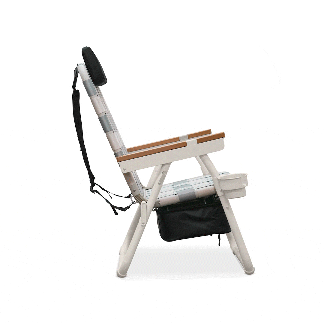 Constructed with durable aerospace-grade aluminum and stainless steel, and upholstered in soft woven polyester, the Eclipse promises day-long comfort. It features a detachable cooler to keep drinks chilled for over 8 hours and extra pockets for essentials, ensuring everything is within reach. Easily convert the Eclipse into a backpack with ergonomic straps, making transportation effortless.
